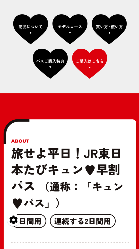 **JR東日本「旅せよ平日!JR東日本たびキュン♡早割パス(通称:きゅんパス)」**の