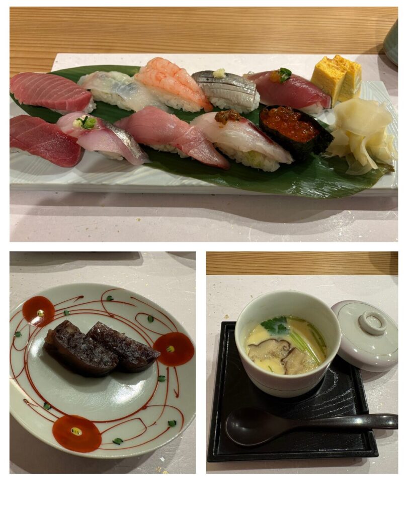 ⭐️握り10貫・茶碗蒸し・汁物(写真ないですが南蛮エビのお味噌汁)自家製手作り羊羹(くるみ入り) カウンター席 一貫ずつかまとめての提供か・・時間あれば一貫ずつ もっと時間かけていただきたかったですが、今回はまとめてお願いしました。新鮮で美味しいお寿司 大満足でした
